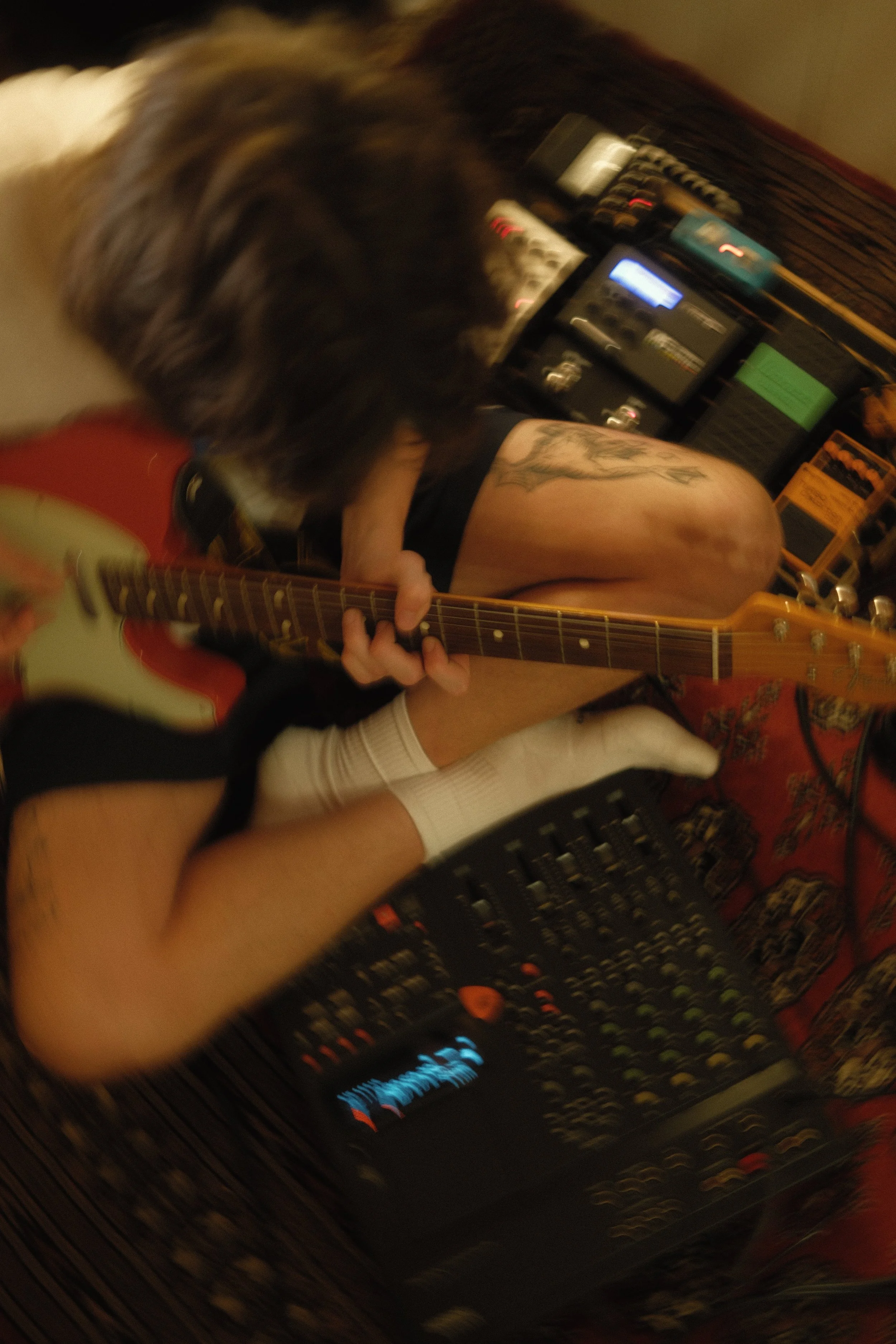 The second part of the photoshoot was the “studio” aspect, where we showed most of the utilised instruments and way of recording the album was recorded, like tape recorders, guitars, bass, keyboard and synths.